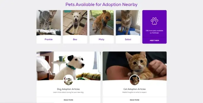 Petfinder is an online pet site for animals who need shelters and homes. Pet finder holds information on about 11k+ animal protection shelters in the USA. It ensures finding a safer place for both pets and pet owners before selling animals. At this best pet store for college students, you can avail of pets with extensive wellness solutions to maintain the parent-pet bond.