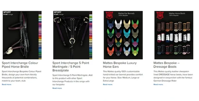 The customers are enabled to shop by their range or their preferences in products and their brands. The range goes from diamond, HKM, Lauria Garell, Mattes, Sports, to Tyffany range. These are the brands that are usually hard to get because their products are unique and quite expensive, considering they look luxurious. These products, especially Tiffany, ensure to bring style and elegance to your riding.