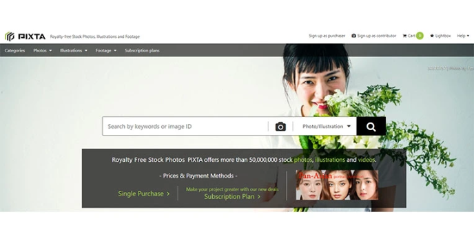 Pixta stock photo website is based in Japan-based with over 48 million stock photos, illustrations, and footage worldwide. Being the largest microstock photo site with over 300,000 contributors, Pixta has developed websites in English, simplified Chinese, traditional Chinese, Thai, and Korean.