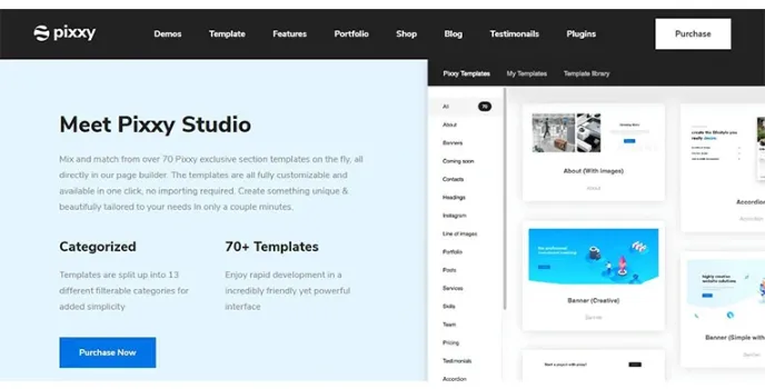 This Pixxy theme is fully responsive and no matter which visitor is on the website, the layout responds to the screen size and ensures that the visitors can still read, browse, shop, download and interact with the website in whatever way possible similar to Chapel and Ultra Portfolio.