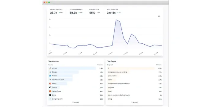 The Plausible Open Source Web Analytics Tool is very simple to understand and efficiently avoid noises. They check your site traffic and procure essential insights in just a flash and avoid building custom reports, dashboards, and more. Their lightweight script enables speedy and accurate analytics.