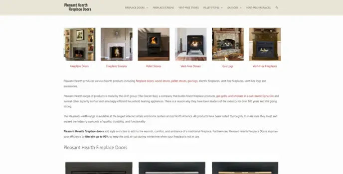 Hearth products improve the look of your fireplace and home while providing comfort and safety. Pleasant Hearth is a leading producer of hearth products, including fireplace doors, wood stoves, pellet stoves, gas logs, electric fireplaces, gas fireplaces, vent-free fireplaces, vent-free logs, and accessories. These products improve the look of your fireplace and home.