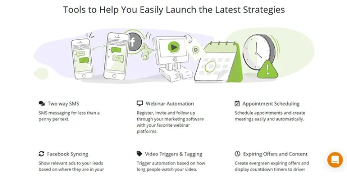Facebook audience synchronization, webinar incorporation and automation (tagging contacts that occur or do not show up in your webinars), and calendar integrations are other resources. You may choose the kartra and Salesforce funnel tool to sell support for sms, videos, etc.