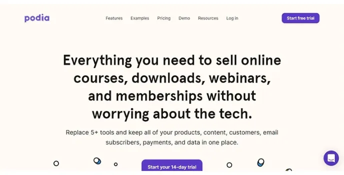 This Podia website builder platform offers you a passion for turning into your income with everything you need to sell online, including courses, webinars download, and memberships, without worrying about the technical staff. It gave you a 14-day free trial, which helps you get various kinds of opportunities that may include online courses, digital download memberships, webinars, email marketing, website, messaging, and more.