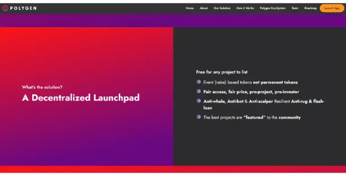 Polygen - A Decentralized Launchpad To Improve The Money Outflow Of Your Project