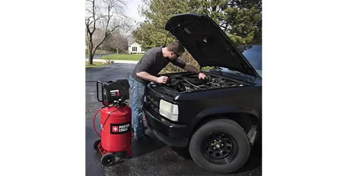 A portable air compressor is an electrical device that converts power into potential energy and releases compressed air for use. General portable air compressors like Porter Cable contain a big diesel engine. The size of the engine and the compressor depends on the airflow that is required. If you require more airflow, then quickly grab it!