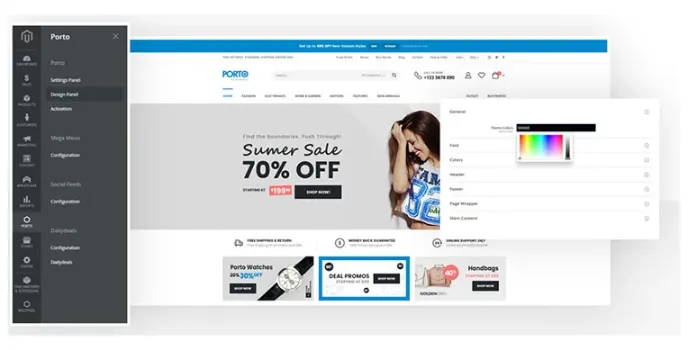 There are over 30+ demos for this, and 20,000+ websites use the Porto Best Magento theme. It also has a powerful theme panel that customizes every element in the theme, such as the colors, contrast, brightness, etc. Once the settings are done, the modifications and additions you do to your theme are applied instantly to all pages of the website. It is highly optimized, which enhances the speed performance of responses on the site.