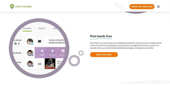 Postplanner is the advnced social media automation tool online for growing businesses on multiple social networks. This tool works on an automated scheduler configured to post curated marketing content on blogs for promoting the brand. Post Planner allows instant upload of data from spreadsheets onto the live site. This innovative tool can handle all your requests, like the time and day the users want their posts to go live on social media for increasing the followers.