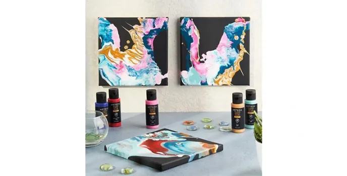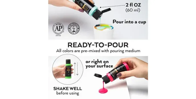 Pouring Acrylic paints offers this exclusive Acrylic fine paint for artists that comes in a set of 32 bold and vibrant colours that are pre-mixed and absolutely ready to pour. This range of ready pour paint has the ideal ratio of pouring medium that is already mixed in and therefore it saves the worry about prepping the paints. It is this pour painting kit that provides for a vast range of colour selection which includes pastels, neons and metallic shades for a variety of fluid art that helps experiment with the best acrylic paint set and best ideas.