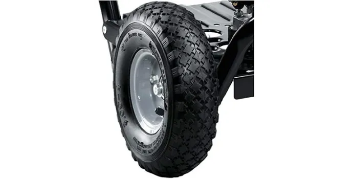 It sports 10" Pneumatic wheels, and a sturdy handle makes getting from place to place is easy. It has a maintenance-free axial cam pump. It is also equipped with a 1-gallon detergent tank. The 30-foot flexible hose makes for Easy maneuvering while cleaning and when storing the unit.