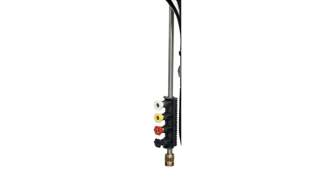 It is a tool that can easily wash a wide variety of surfaces like a concrete wall, asphalt, vinyl siding, and hardwood, etc., with the, included five quick-connect nozzles angled at0°, 15°, 25°, 40°, and soap that enhances its versatility.