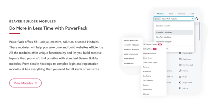 Using the Beaver builder modules, the efficiency of the web pages improves in terms of content that saves you a lot of time to design your websites. PowerPack Lite is one of the best Beaver builder addons, which provides unique and creative modules used for all websites. There are a total of 65+ modules, including content and lead generation.
