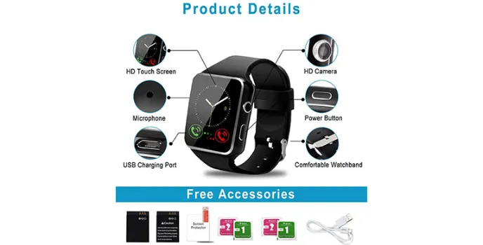 It has a unique waterproof design making it good for outdoor activity. The Pradory Bluetooth Touchscreen Smart Watch also has a 1.54 inch TFT LCD 2.5D radian capacitive touchscreen which has a resolution of 240x240 pixels making the screen clear and bright. Similar products in the market would include the Taktoppy smartwatch and the Foronechi touchscreen smartwatch. The camera is a 1.3-megapixel camera and is equipped with a 500 mAh Polymer battery.