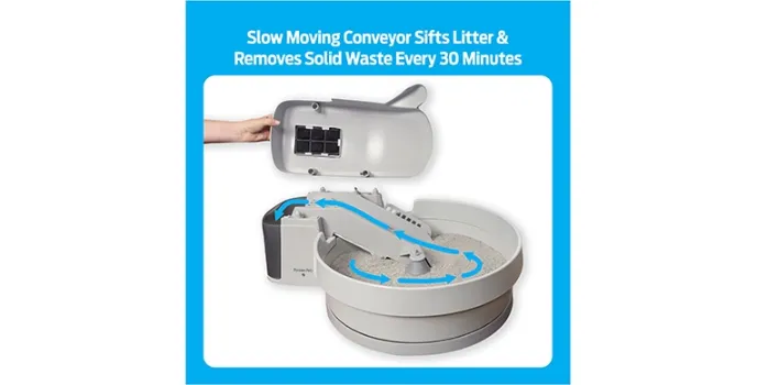 Won't disturb your home silence and not scare cats! Premier Pet Supply is one of the top cat litter boxes manufactured with a whisper-quiet system and slow-moving conveyor to remove waste in 330 minutes without hassle.