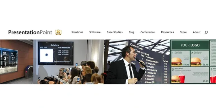 The presentation point is a suite of digital signage that works well in sync with PowerPoint. The digital signage includes automatic player updates, a media library, remote display management, content scheduling, multi-screen support, and a visual editor.