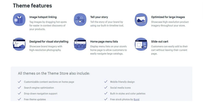 Well, for anyone who is looking for options related to Shopify themes that help for promoting premium and high-end appeal, then this Prestige Theme is the perfect choice because of its wide range of features. Whether it be for men or women, this one works as the best Shopify theme for clothes too. Here are a few of its features to help you understand. There is an image hotspot linking option in this theme, and this effectively helps for tagging images for the easier in-context discovery of the products.