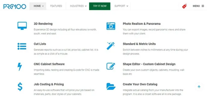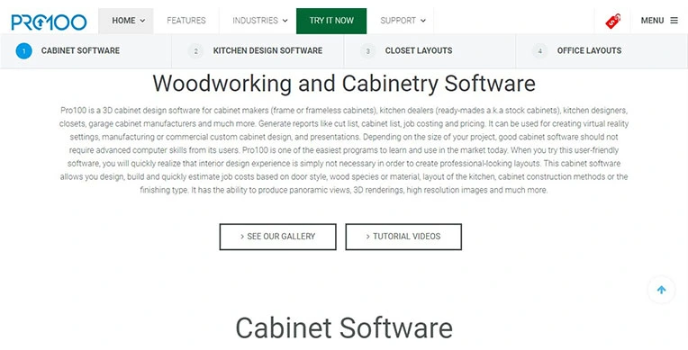 A glance at essential features through which you can access and satisfy your needs, there are multiple software features to industrial use, such as customized cabinet designs to create object shaping and editing. Experience 3D rendering patterns as per revolution like north, south, east, and west. Easy to use software produces a cut list with a simple click. Moreover, the Pro 100 platform has a CNC cabinet that allows importing data, G-code, and nesting functionality seamlessly to fulfill client's preferences.