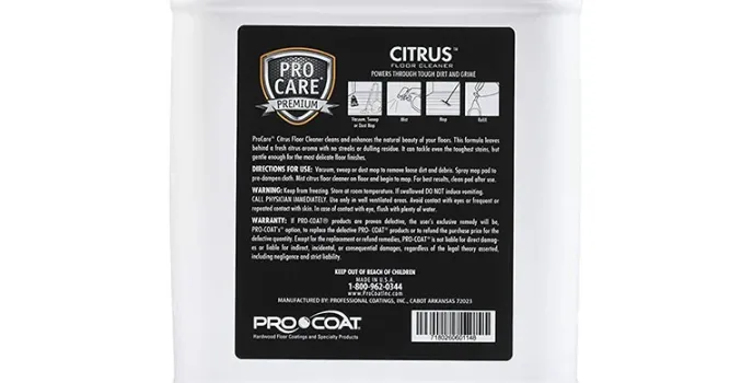 ProCare doesnβt give any dull residue and leaves behind a fresh citrus aroma. When using this cleaner, even the tougher stains can easily get erased with a gentle mop. It doesnβt work like the other strong detergents or cleaners that are available in the market. This is a perfect cleaner that doesnβt remove the floor's quality but helps to remove the stains.
