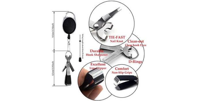 Four-in-one, four hundred twenty stainless steel Fast Ligation Unit. Simple to use nail knot instruments with a retractor, which fits nicely in a bag. The entire bag with the quick knob fork will do most ordinary jobs with a row clipper, a cleaner eye, a hook sharpener, and a D ring.