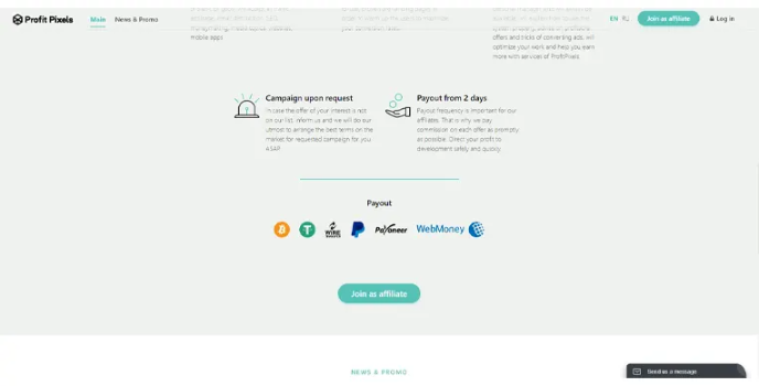 One of the main advantages of profit pixels is there is no-minimum pay threshold. The affiliates have a variety of payment methods like Bitcoin, Paypal, Ethereum, Wire, and many more payment options are available.