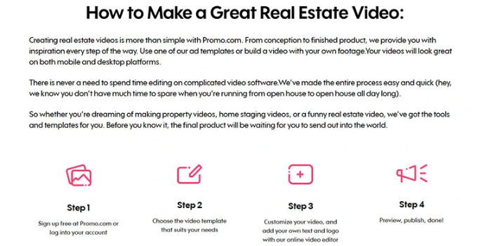 With its already installed templates and idea approach for creation, the Promo marketing tool is a real estate marketing tool as it helps in creating customizable videos and clips for social sharing with privacy options.