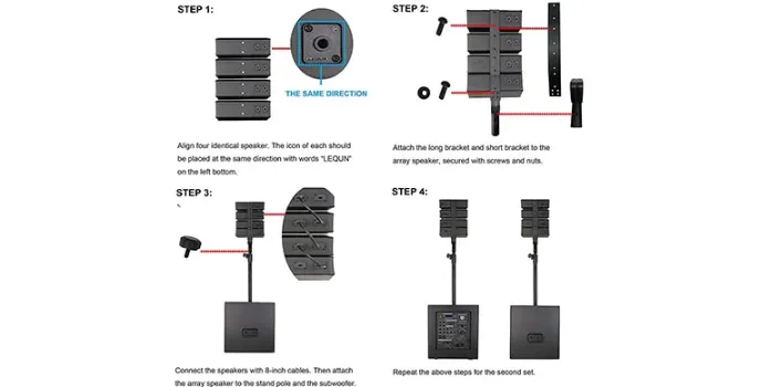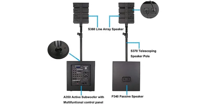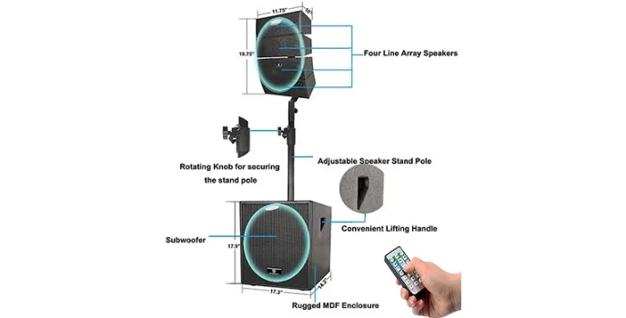 The party speaker has an LCD that comes in a Combo set with Bluetooth and USB and remote control that might also contain subwoofers and 8X are speaker sets. It provides a speaker type of subwoofer or an item weight of 121 lbs with an All-in-One 4000 watt Bluetooth p a system that consists of an active subwoofer with passive woofers and 4 x 4 inches array speakers.