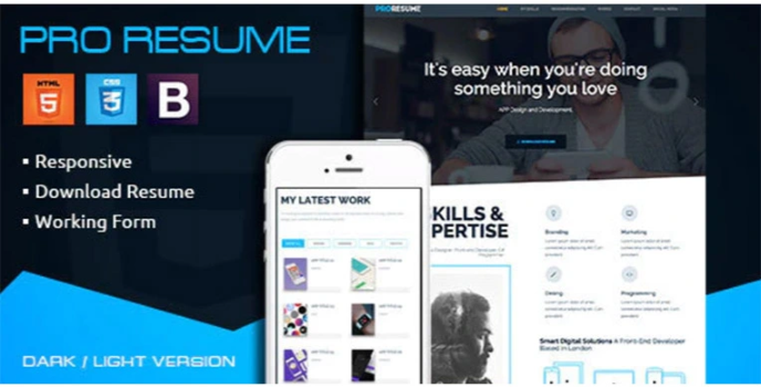 Here comes the third template that is quite popular online known as ProResume – a single-page personal resume HTML Template with a modern, clean, and organized-looking design. A mixture of a fresh, user-friendly interface makes this RS card unique to provide an optimized user experience. The developers have a proper balance between UI and UX to offer an excellent user experience on reviewing the resume/ cv or Vcard template. It is ideal for freelancers, trainers, business consultants as well as creative studios/companies.