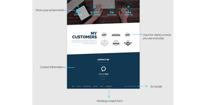 Another advantage of ProResume HTML Resume Template is the Availability Calendar section, which provides additional space for opportunities. The template perfectly suits for placing information about your experience, skills, education, freelance, and expertise. You will also be able to add, manage blog posts on your page as well. Furthermore, the availability of Google web fonts makes it much more appealing. It has been composed with a Working Contact Form at the last section of the resume page, along with hyperlinks to link your social accounts.