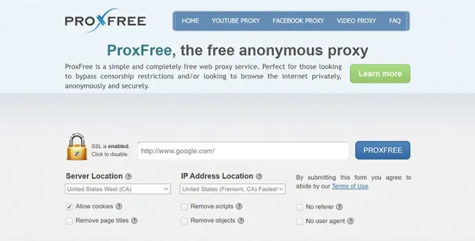 ProxFree - Powerful Anonymous Proxy Site For Your Web Browser