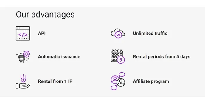 There are approximately 100K residential proxies and other types used for websites and social media like Facebook, Twitter, etc., with high speeds, stable connectivity, unlimited traffic, advanced API, and many other reliable features for digital marketing, browning, and gaming on banned sites.