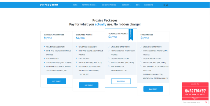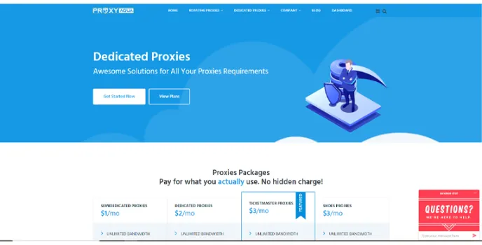 What makes you feel special while browsing the web? Seamless, advertise-free, secure, restricted-free browsing, right? ProxyAqua provides fully anonymous, unlimited bandwidth, plenty of IPs, and other security techniques to cover overall client's requirements.