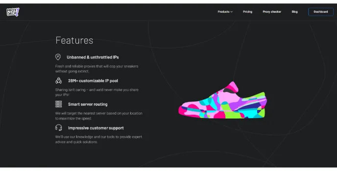 The best sneaker proxies made with more than 28 million IP addresses pool that seamlessly supports multiple locations to grant user restriction-free accessibility for many limited edition sneakers based on your desire. It is a kind of private proxies that ensure to keep you away from restrictions while using applications or websites.