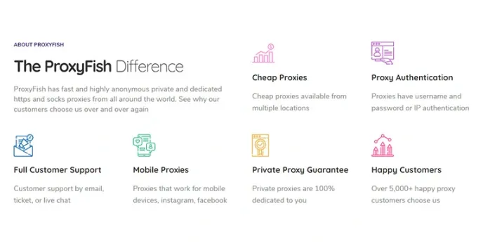 Proxyfish Russian Proxy is a quick 10 minutes installation platform for beginners that gives usernames, IPs, and passwords authentication against unauthorized users.