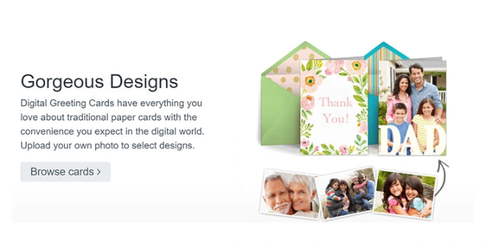 - Delivers thoughtful digital greeting cards