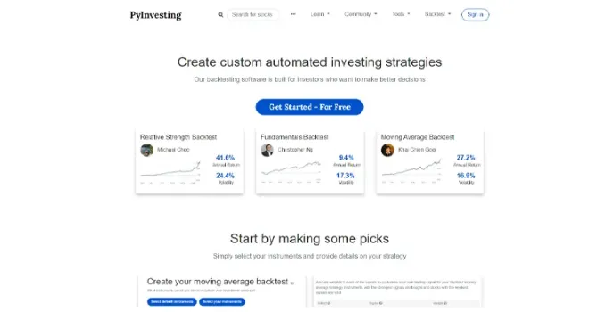 PyInvesting.com is still in its early stages, but it already includes three main sections: a screener, a backtester, and a live component that allows users to test their plan in real-time.