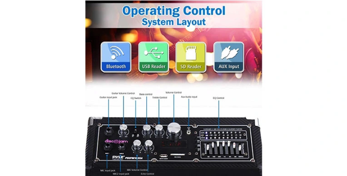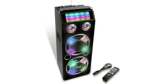 The Pyle-powered addresser is designed with multi-flashing lights and portable dual speaker intended equipment to eliminate the need for excess addressers and create a club or rocking environment for home gatherings. The precise yet expensive orator has a control panel on top of the body with noticeable color, including adjustable echo, main volume, guitar volume, etc.