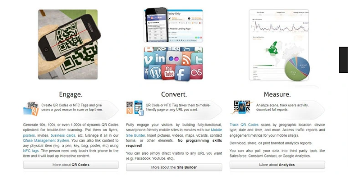 No coding is required! Track user activities to access reports and engagement matrices through the location. It allows us to transfer data to third-party such as google analytics, constant contacts, and leads to convert with pictures, maps, vCards, video, and other essential elements. Hence, it is compatible via Android, Windows, Iphone operating system.