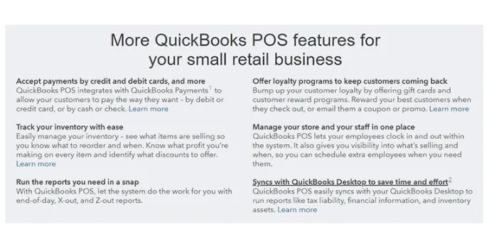 The retail POS software easily lets your employees check-in and out within the system's functionalities, and you can see what is happening and what is selling quickly. Quickbooks provide accurate financial information and inventory assets. You can save some precious time and focus on other aspects of the business.