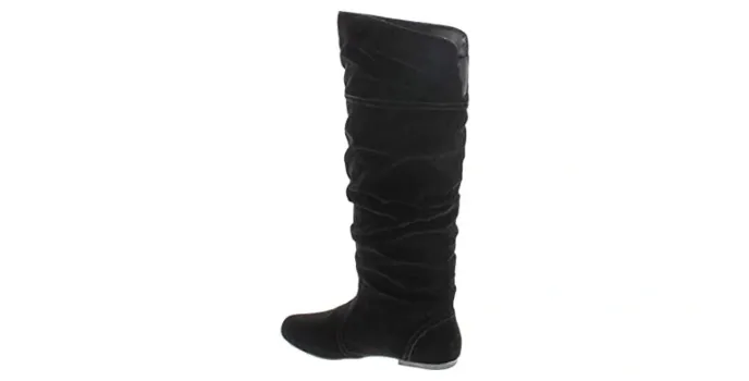 The thick material of the flat boots is sturdy and reliable. It is a classier option and completes the winter look eventually. These are sleek, leather slouchy boots that fit the calf for a straight-up look. The outsole has the necessary grip and is for the Winters.
