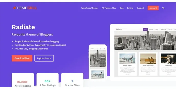 Get personalized themes for Wordpress website from Radiate online theme and layout creator. Radiate is popular for building top standard themes for over 10,000+ personal blogs and websites. It also provides commercial shopping platforms with its best collection of compelling themes that are very easy on the eye. These themes are optimized in such a way that they take the least time for loading. It is proven by Google that this theme has a 99% speed score.