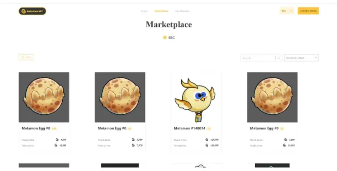 Radio Caca Market NFT marketplace has various native tokens, including Radio CaCa Token, GameFi, Metamon Island, Radio CaCa Coin, Play-to-Earn, RacaArmy, Universal Metaverse, USM, Metamon for utilizing them during sales and purchase of assets.