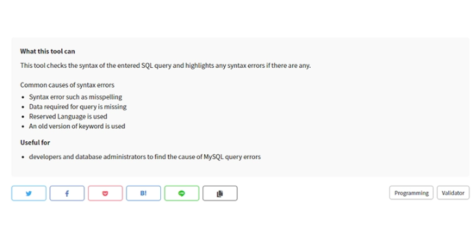 RakkoTools - SQL Syntax Checker Online To Optimize Search Engine