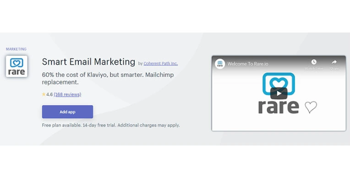 Rare is a part of the E-mail marketing softwares for Shopify. It lets one create a great connection with the customers, and it enables one to create customized text templates for the perfect branding of the business. It allows us to manage to send, modify, and deliver fundamental aspects of emails perfectly to survey customer behavior each time.