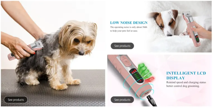 Razoo's professional electric dog clippers have rechargeable batteries and serve a cordless trimming purpose. The nail clippers produce low sound and vibration. These Razoo products are safe to use.