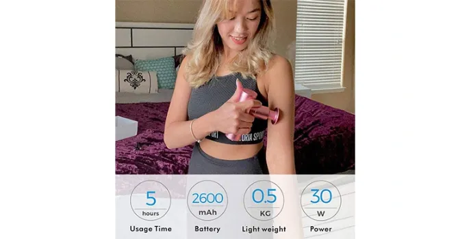 This best mini-massage gun needs to be charged for 1.5 hours, and you can refresh it whenever with any USB port, power bank, laptop, and car charger.
