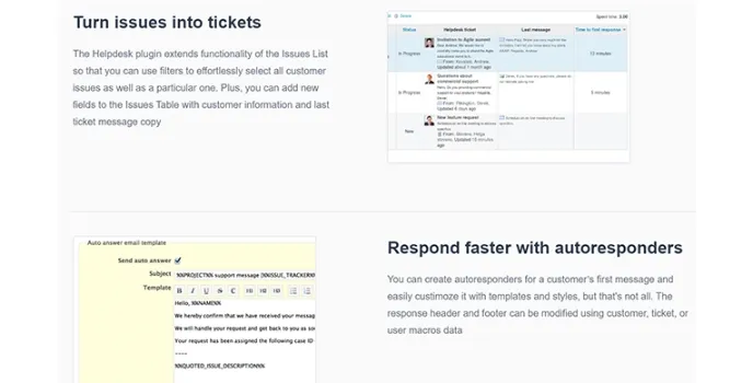 It helps the users to reply to the ticket from the page they issued it, and it will pick details and macros associated with that particular ticket. The Help Desk software helps the users filter customer tickets, and you can also add fields to update certain tickets with new issues related to them.