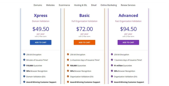 Whether you are looking to avail domain services, building your own website, email solutions, or securing your business data through SSL certificates, register.com has got you covered. Recognized as one of the top SSL certificates for eCommerce website providers, register.com is the best OV SSL certificate provider for start-ups.