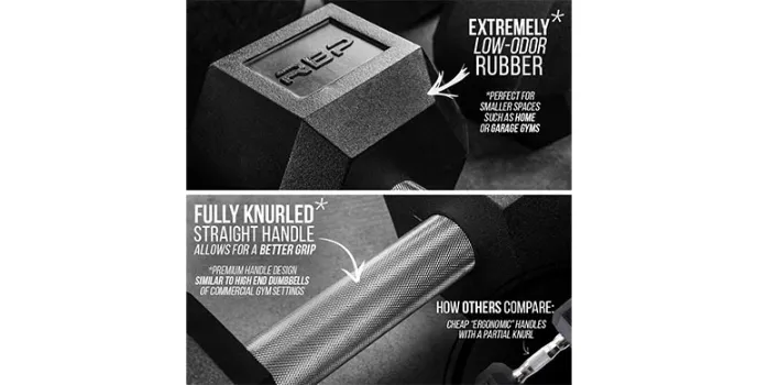 The rubber is free from odor, providing a safe environment for the fitness freaks. Also, the Superior coating of the rubber adds more value to the dumbbells. REP provides enhanced comfort when related to other dumbbells in the market. The dumbbells help burn more calories via aerobic movements.