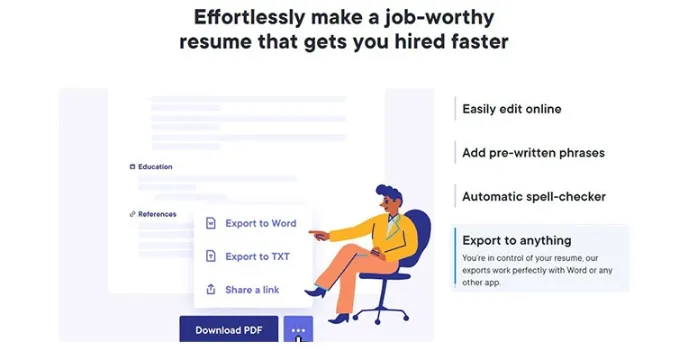 Resumeio is an effective service provider in the related field equipped with state-of-the-art features to design the best CV and cover letter for the users. It can aid the users in creating the best-suited resume for their dream job.