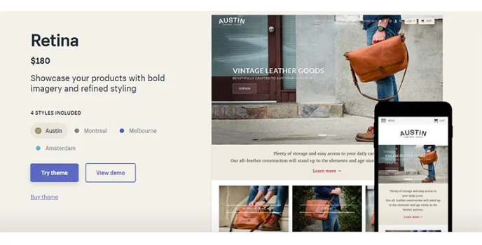 Suppose you are looking for a perfect Shopify theme. You can choose Retina as it showcases your products with custom designs and provides various other features that give every customer showcasing your products with bold imagery and refined style, which helps you try your theme and give you a perfect view demo.